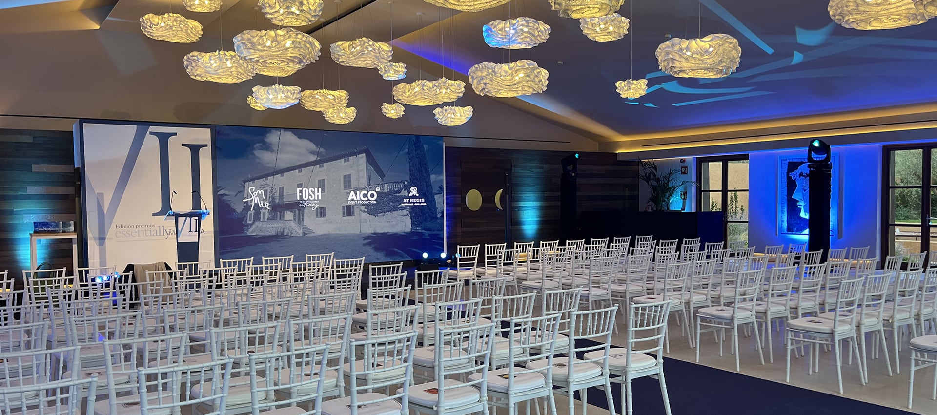 Absolutely. We work with an audiovisual company that covers all the needs that are usually required for this type of events: Sound, screens, lighting, furniture, tents, live music groups, DJs...Our also venue includes high-speed Wi-Fi.
