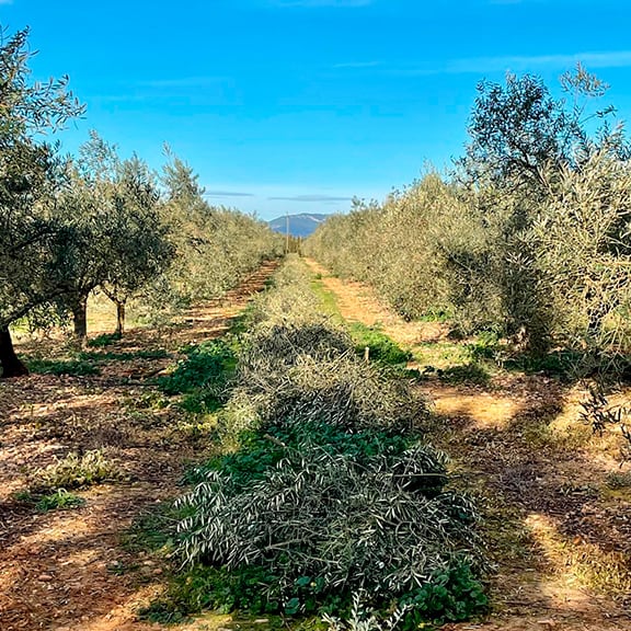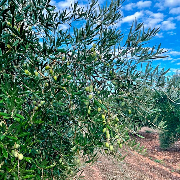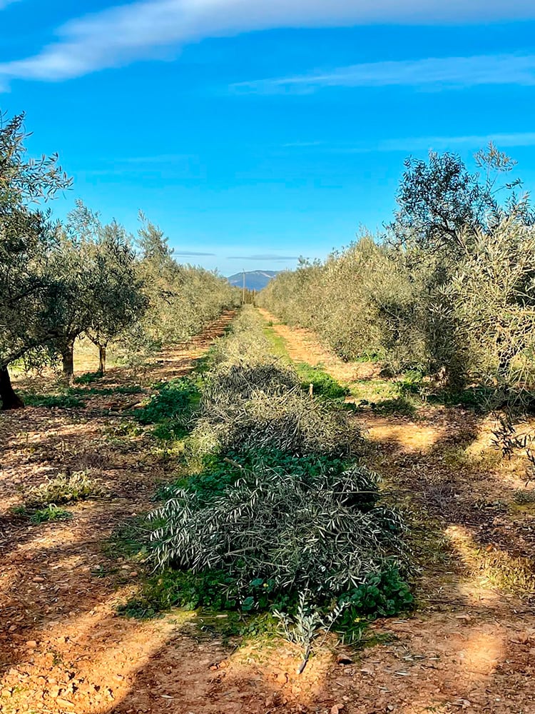 Our olives are harvested using gentle vibrating machines that allow them to fall naturally onto nets placed beneath the trees. They are then carefully gathered and transported in ventilated containers to the Sóller Cooperative, where they are pressed immediately to minimise oxidation.