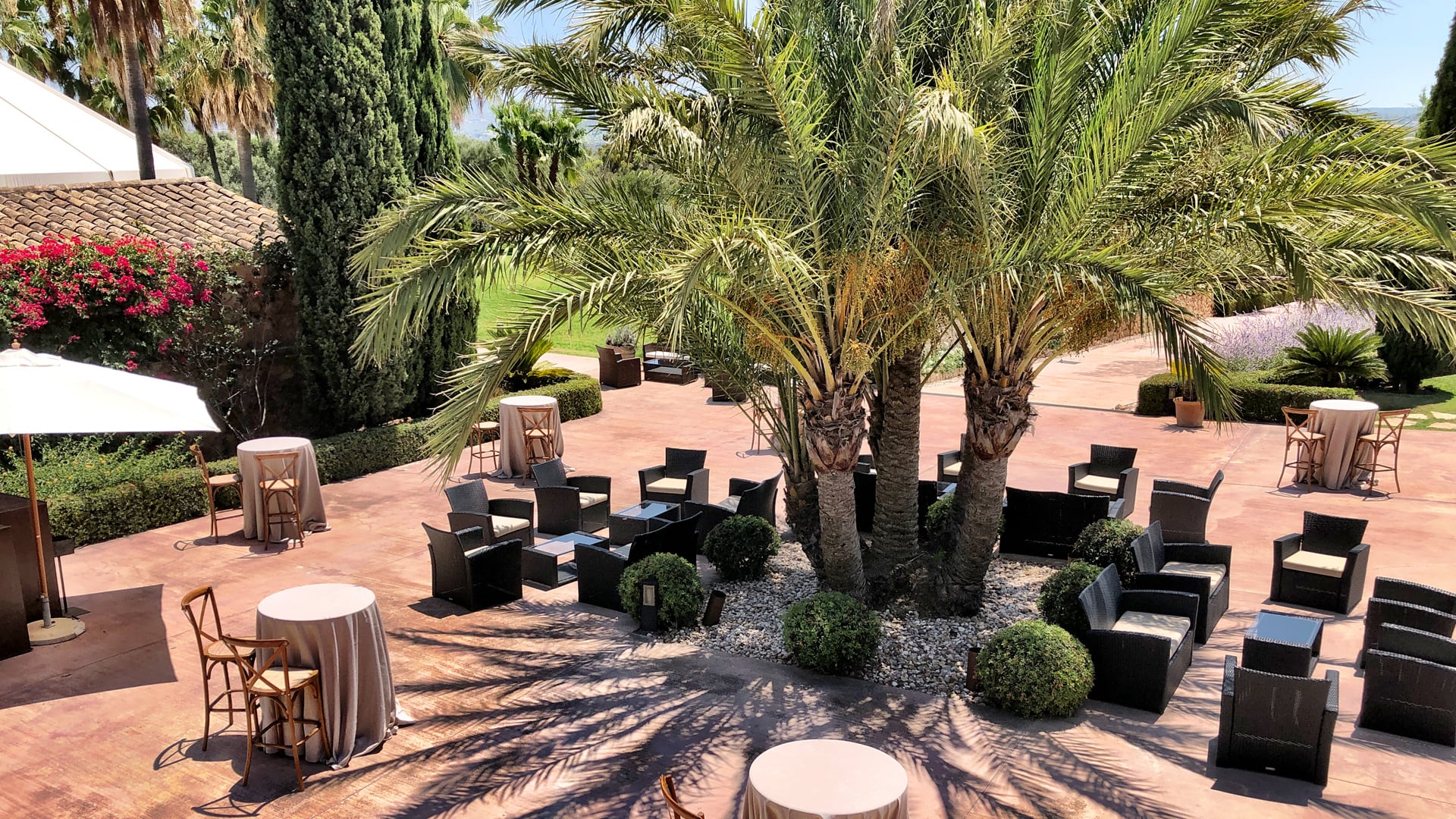 This area serves as the main meeting point on the Estate, harmoniously uniting all spaces of the finca. Its location is perfect for welcoming guests with a welcome drink, offering a spacious and cozy space. Ideal for celebrating cocktails, appetizers, or even an outdoor section of the party, this environment combines elegance and functionality, creating an unforgettable atmosphere from the first moment.